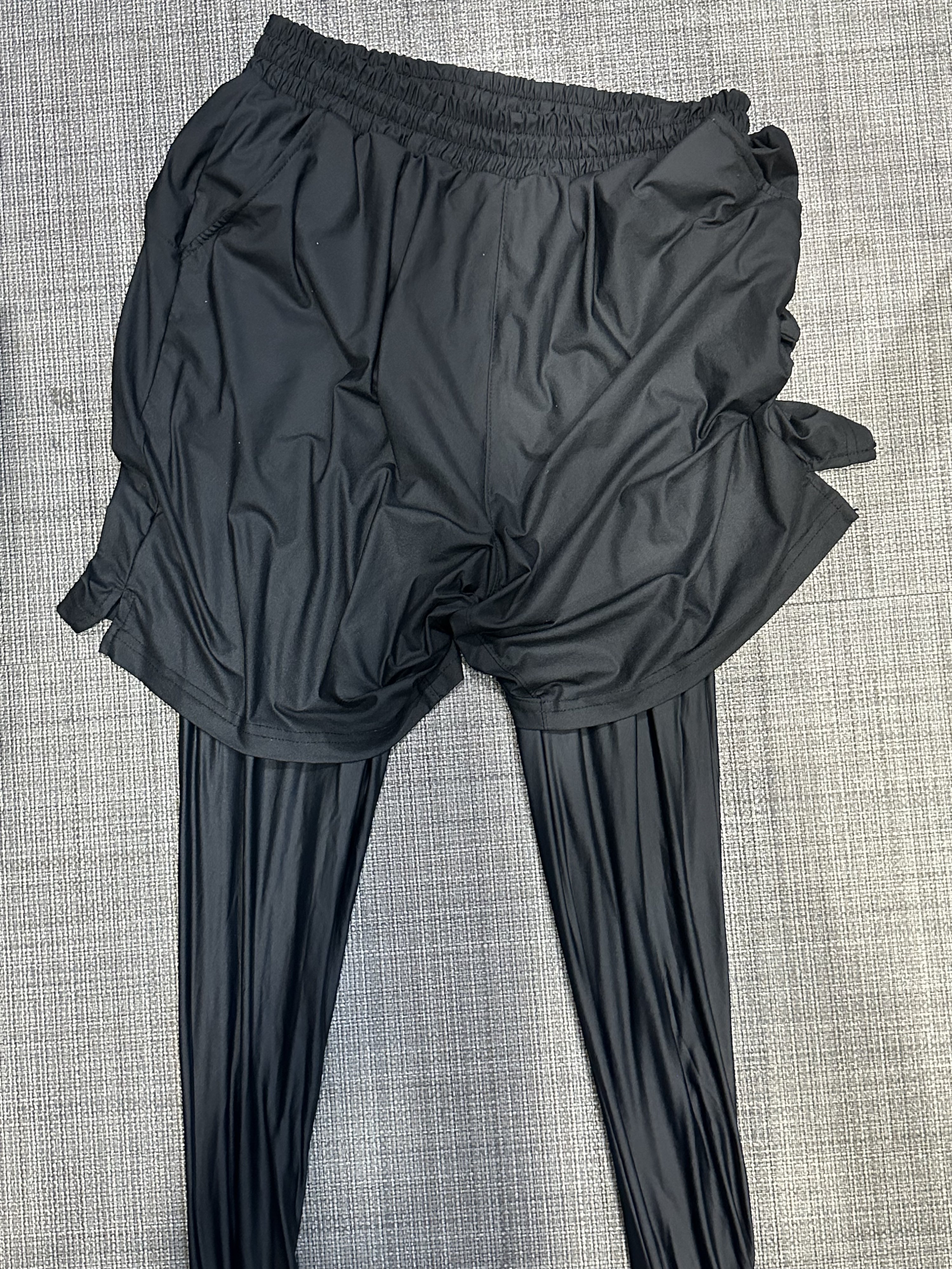 반바지와 긴바지가 붙어있는 형태의 검정 하의
