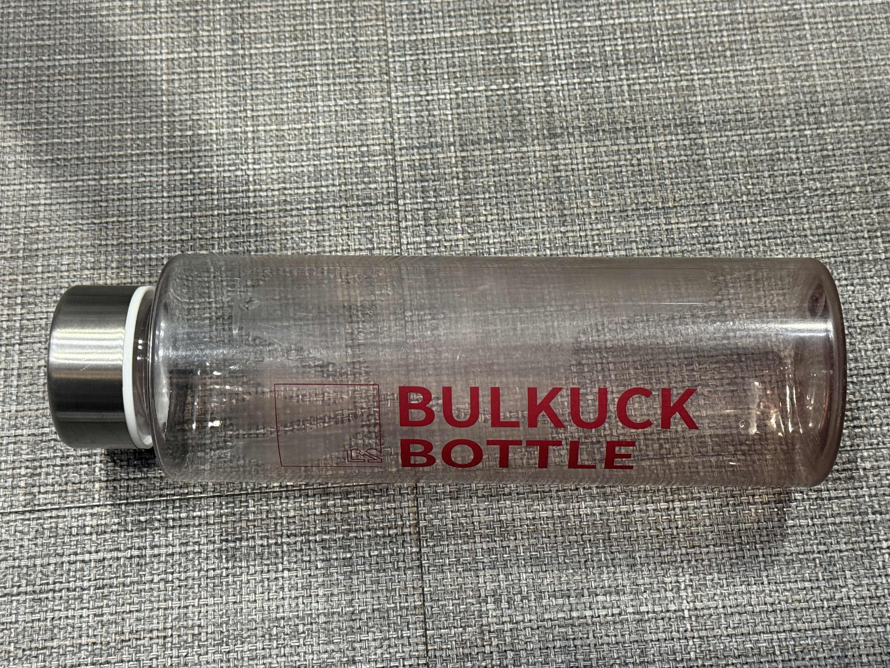 실버색 뚜껑 텀블러 빨간색으로 BULKUCK BOTTLE 라고 적힘