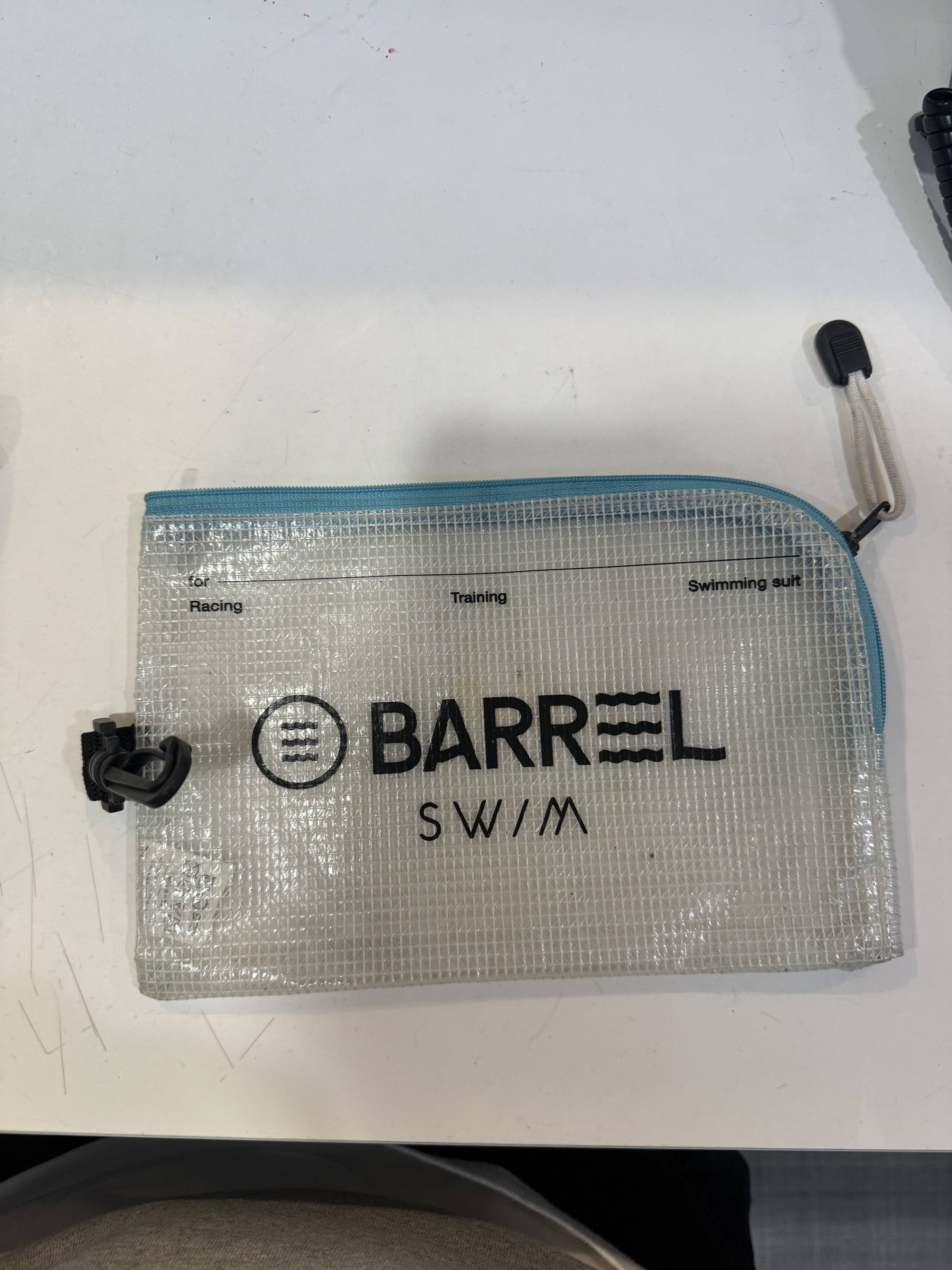 배럴 파우치 흰색/하늘색지퍼