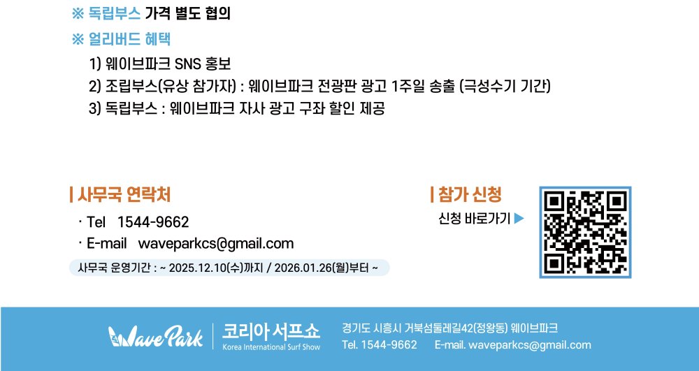 2026 코리아서프쇼 참가비 및 WavePark 공동 주관 프로그램 안내