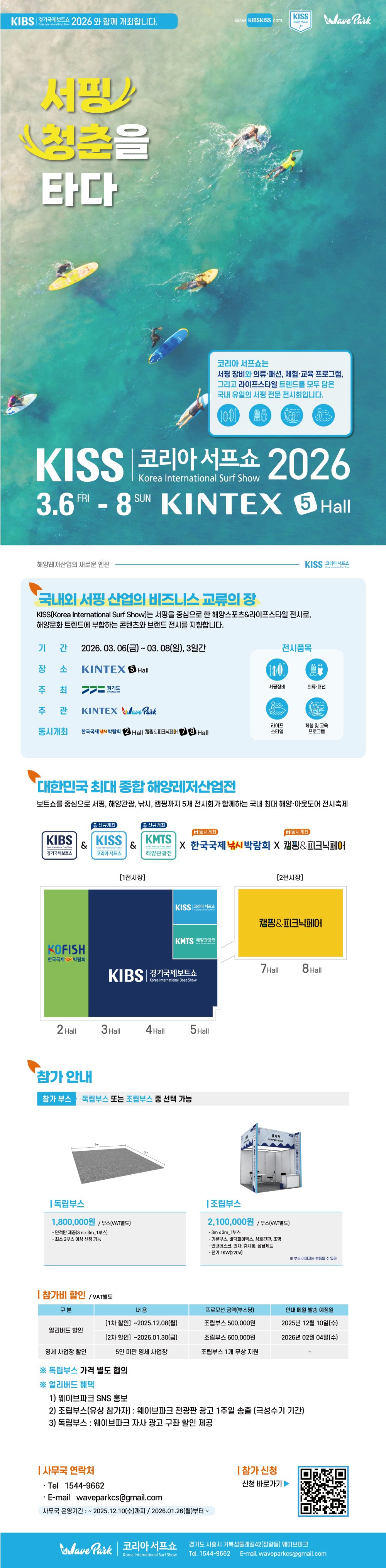 KISS 코리아 서프쇼 2026 접수 안내 25.11.18 2차 얼리버드 참가 신청 접수(~2026년 1월 30일까지)↓↓↓↓https://forms.gle/X9AThyzzNXLZbTRZ9 웨스트라군 오리배 무단 점용 안내문 [공지] 2025 시즌 보드보관함 이용 방법 공지 목록으로