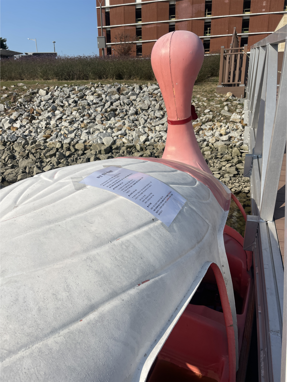 본 안내문 부착 시점(25년11월19일)으로부터 일주일(25년 11월 25일)시간 이내 오리배를 직접 회수하여 주시기 바랍니다.